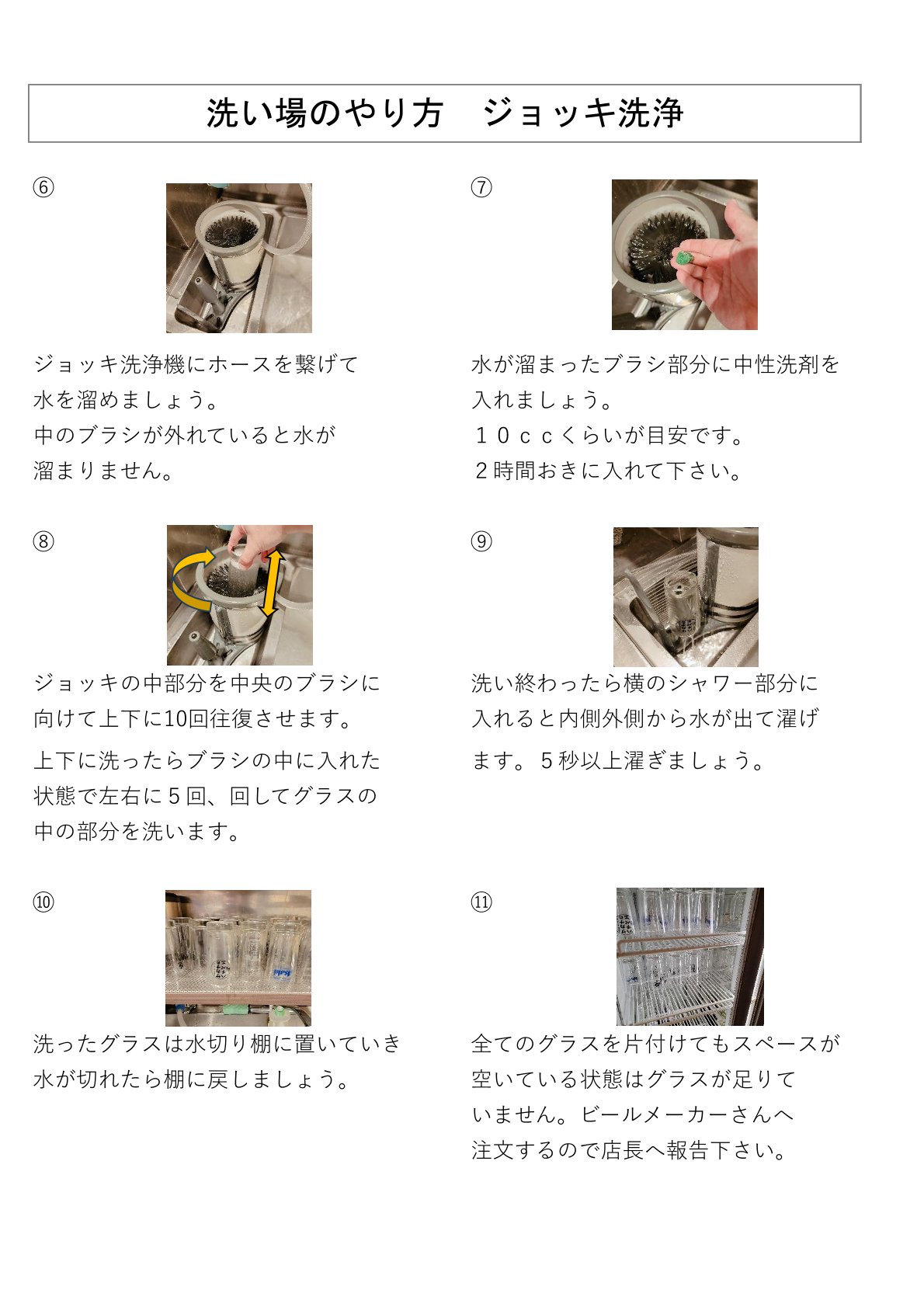 洗い場食器、ジョッキ洗浄